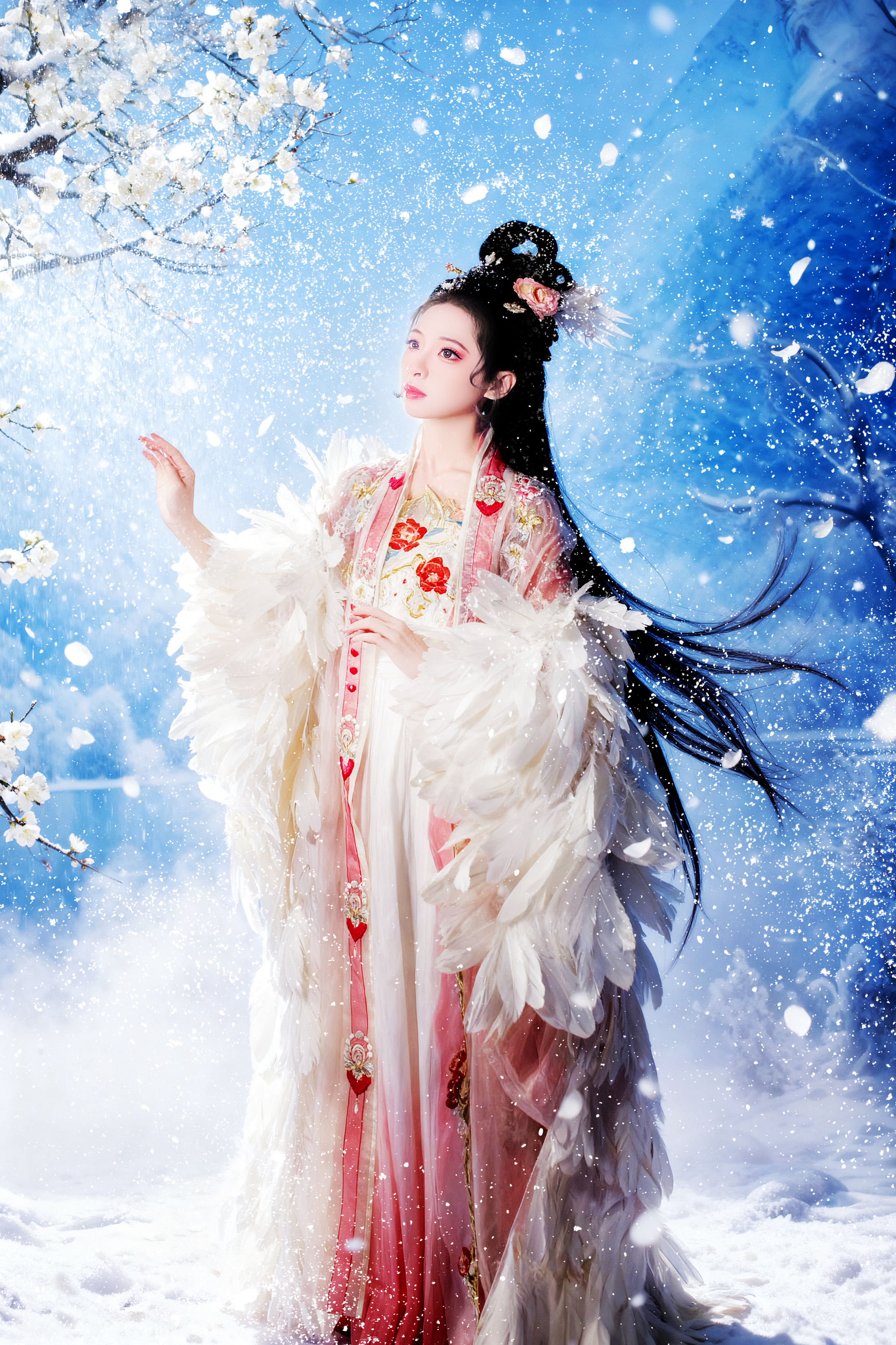 一襲華裳,在白雪中綻放溫柔