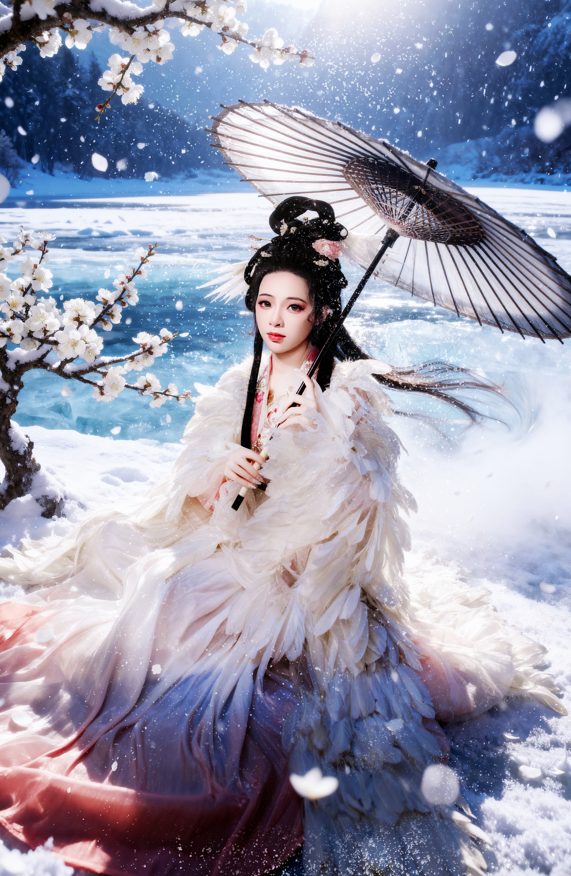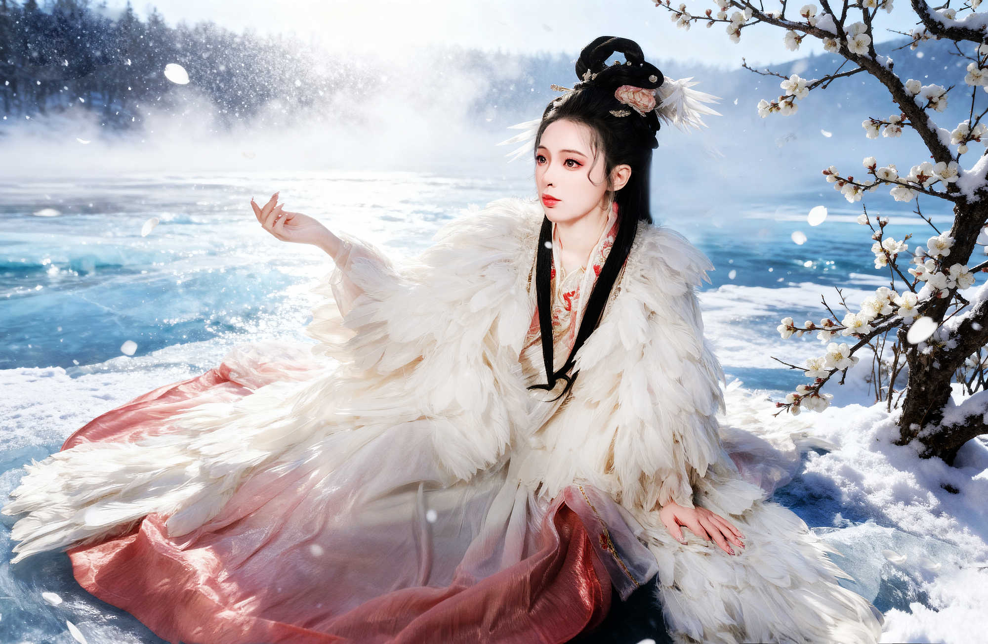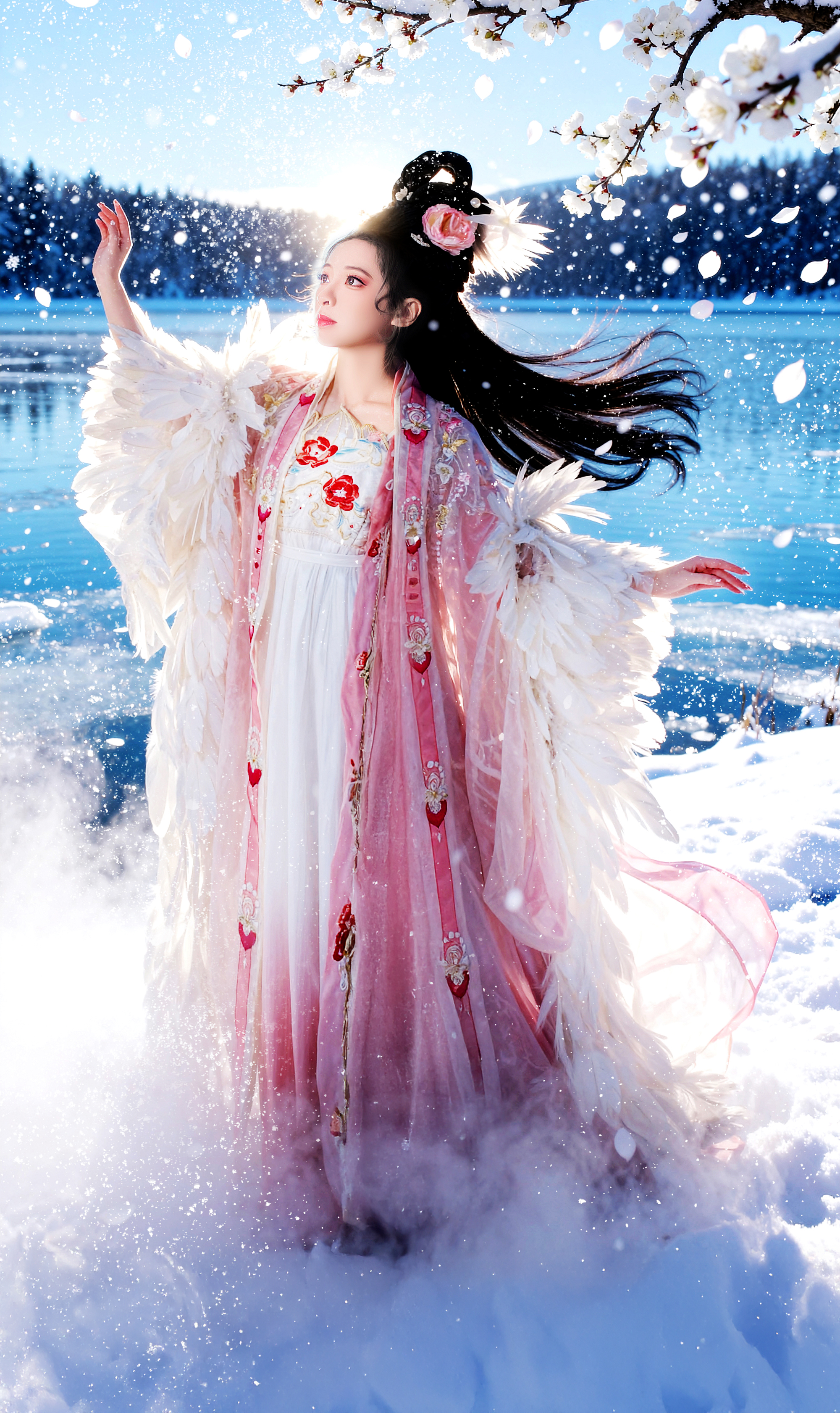 一襲華裳,在白雪中綻放溫柔
