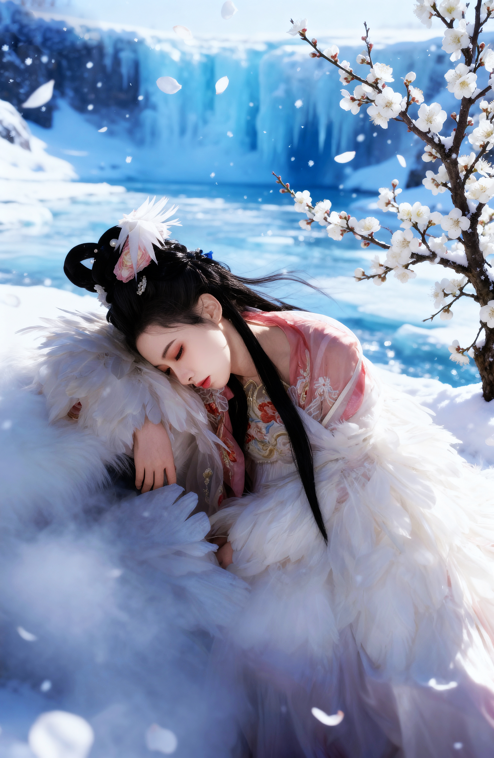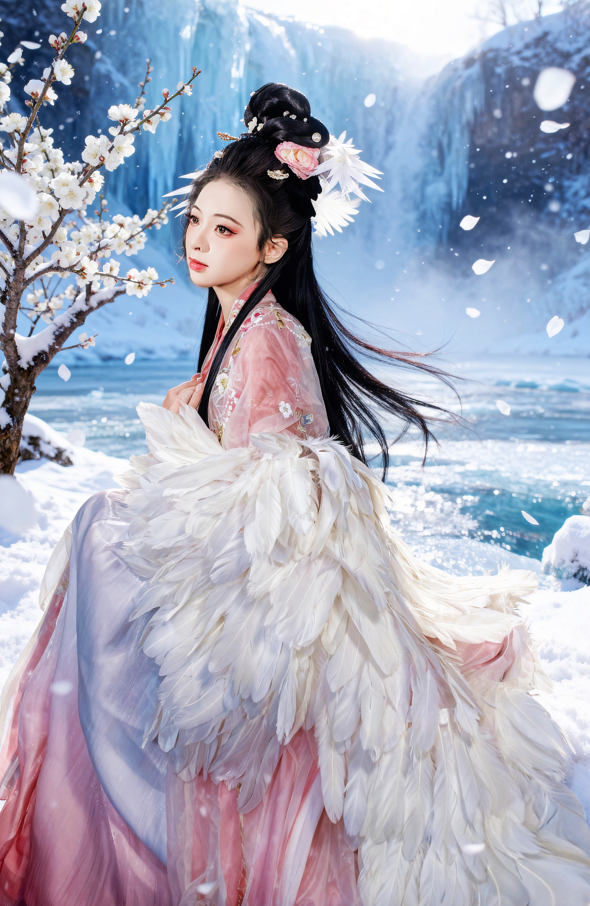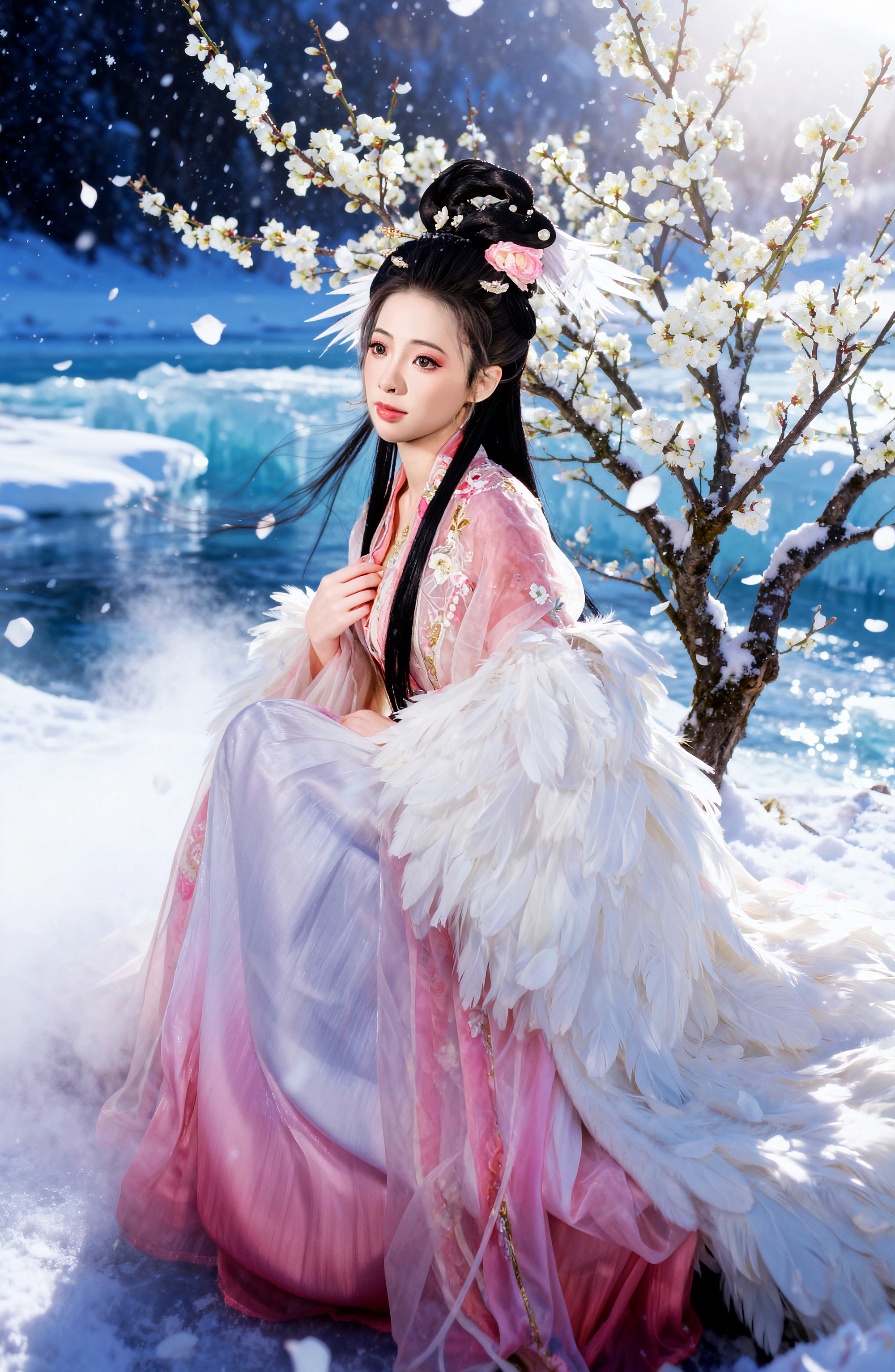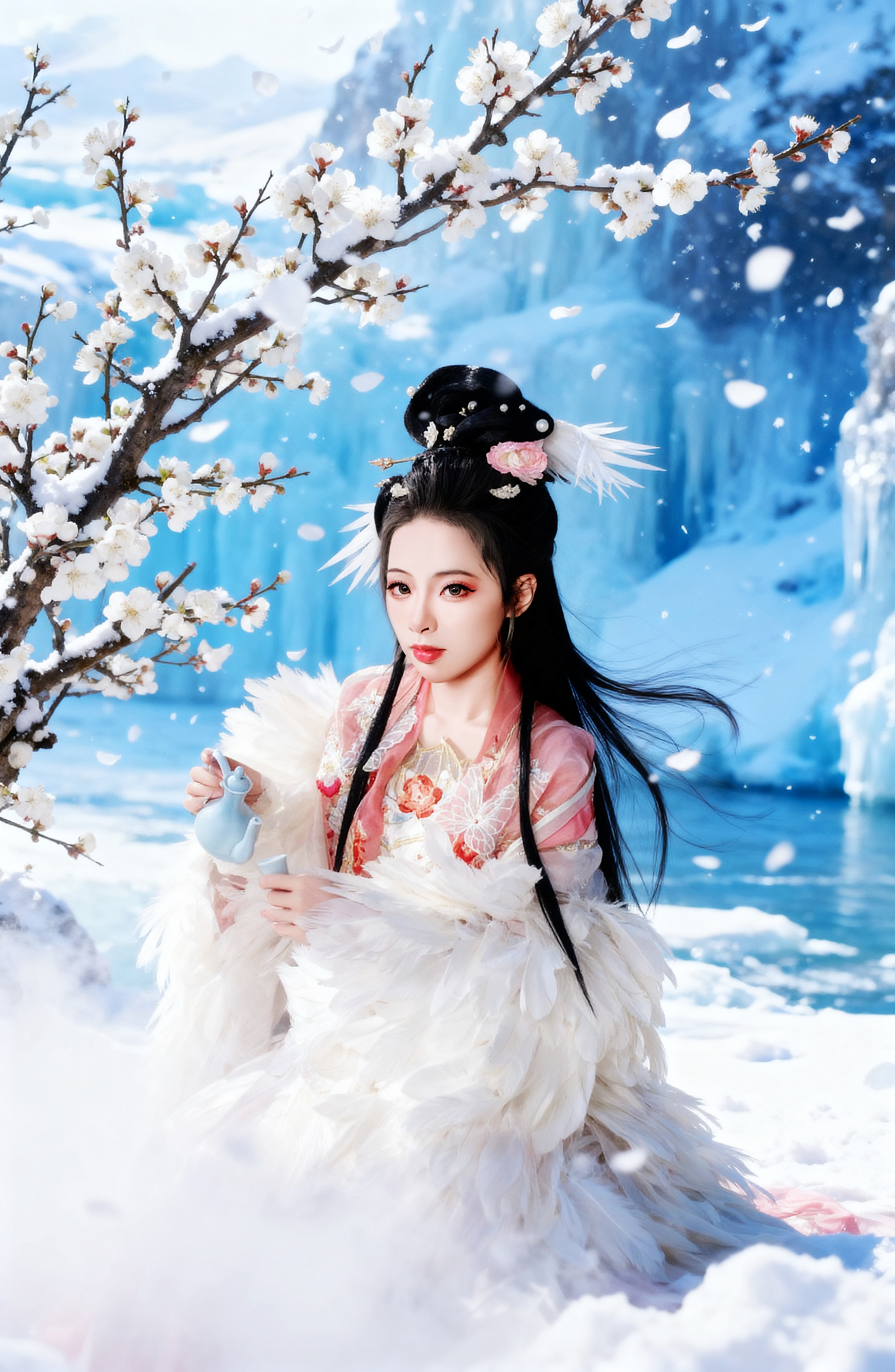 一襲華裳,在白雪中綻放溫柔